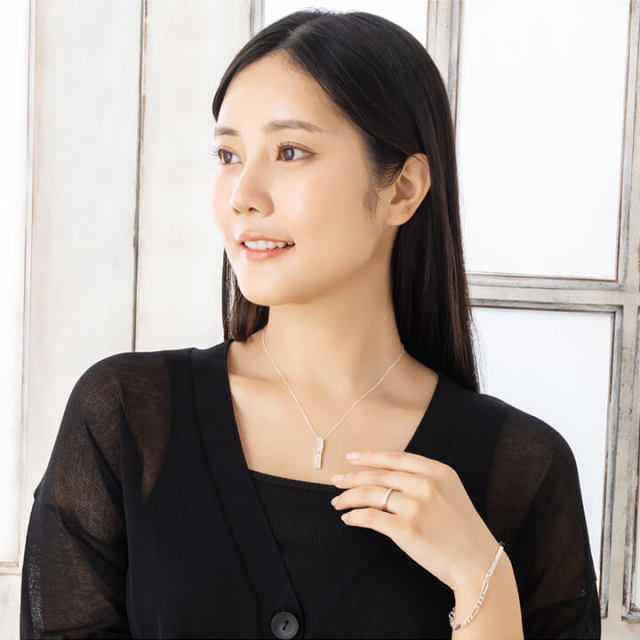 シンプルで洗練された縦ラインデザインネックレス。
