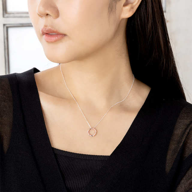 ループするエッジラインが二人をつなぐリングネックレス。煌めく12石から選べる誕生石。
