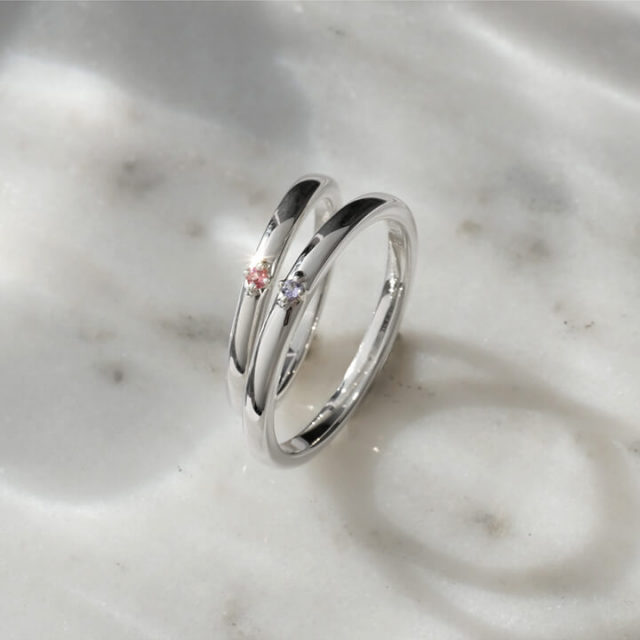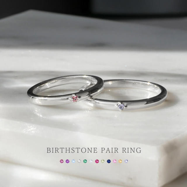 お好きな誕生石が選べるシンプルデザインのペアリング。